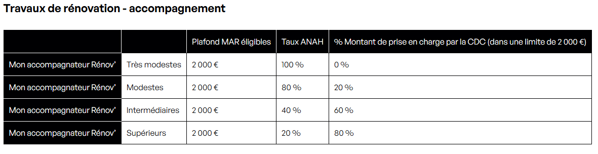 L’objectif est d’inciter les habitants à engager des travaux, en leur facilitant l’accès aux aides existantes grâce à un accompagnement sur mesure, assuré par des professionnels agréés (Mon Accompagnateur Rénov’, Assistant à Maîtrise d’Ouvrage habilité autonomie…) ;