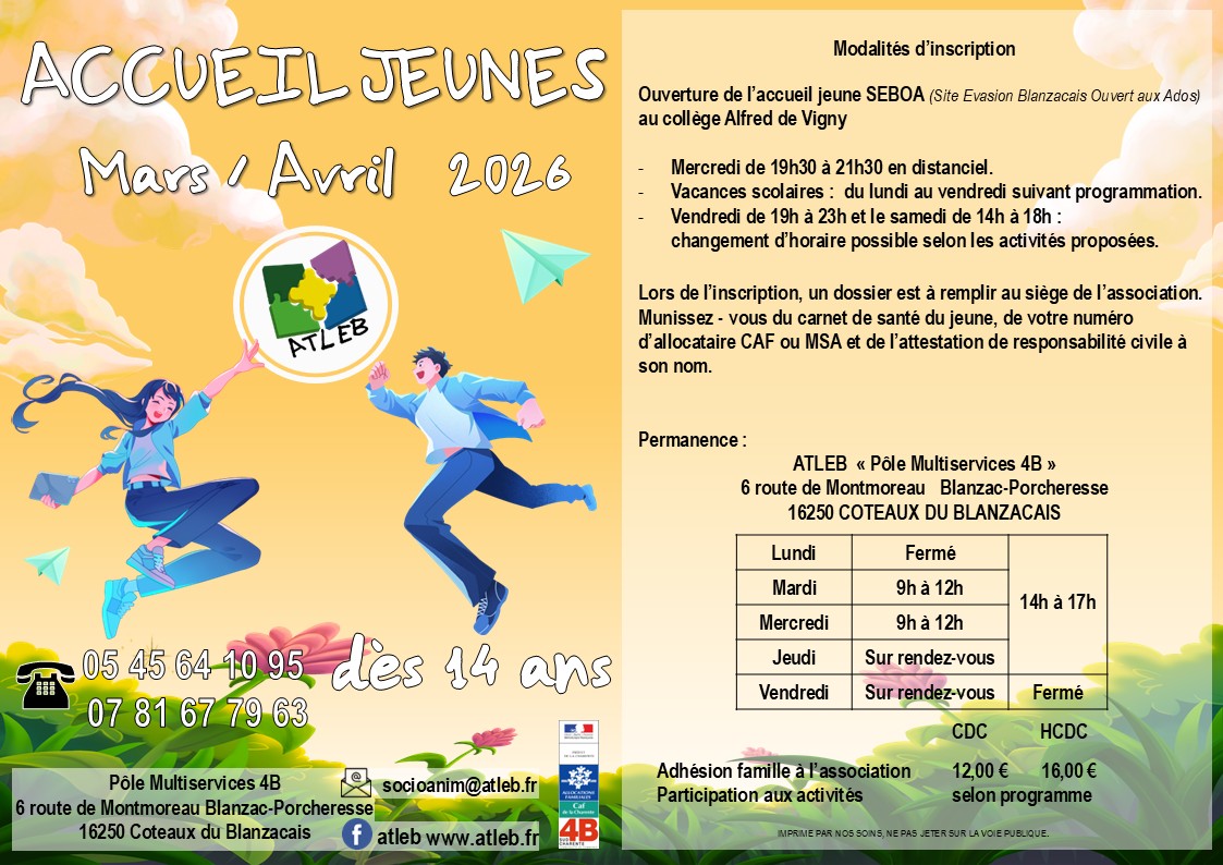 Programme Accueil Jeunes Mars/Avril 2026