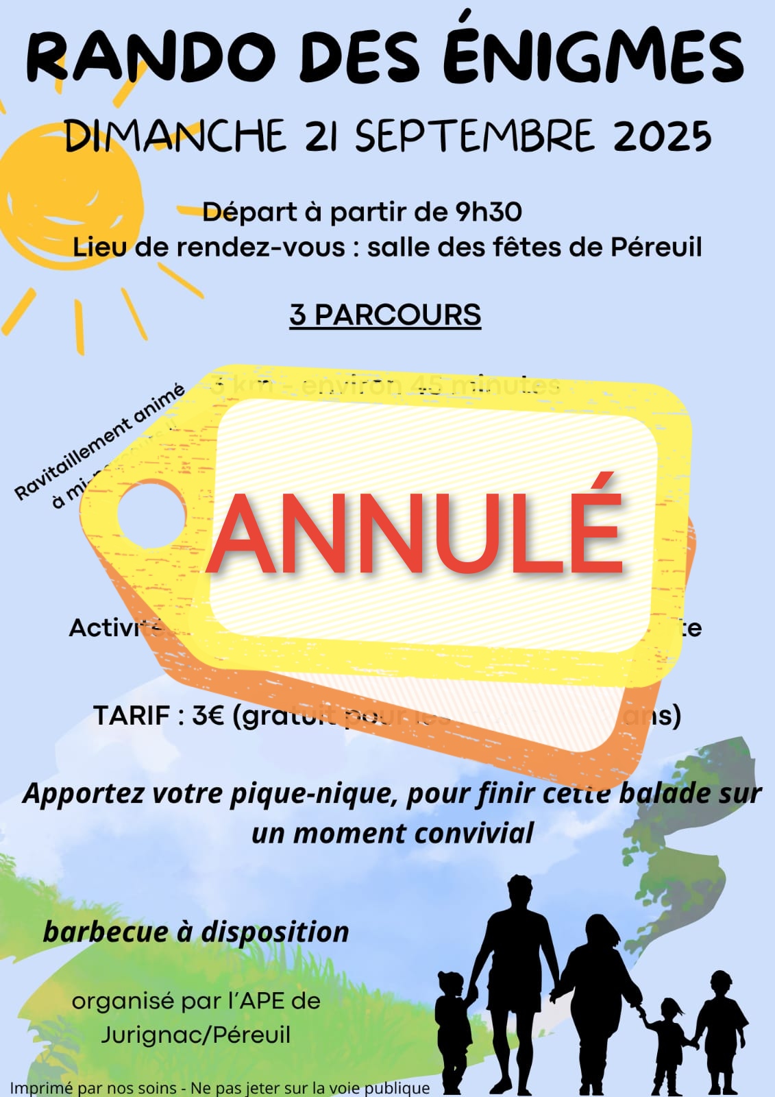 ANNULÉE APE JURIGNAC/PEREUIL – Rando des énigmes